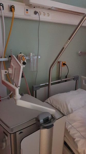 Het was 7:00 uur en de verpleegkundige kwam me ophalen naar de operatiekamer. Ze reed mijn bed door gangen, liften en sluizen tot ik op de verkoeverkamer aankwam. Daar was het wachten op de operatie. Ik herinner me hoe ik naar buiten keek naar de bomen en rustig probeerde te worden. Toen de dokters me kwamen ophalen voor de operatie, raakte ik helemaal in paniek. Ze probeerden me wat af te leiden door vragen te stellen, maar het lukte me in mijn angst nauwelijks om antwoord te geven.
