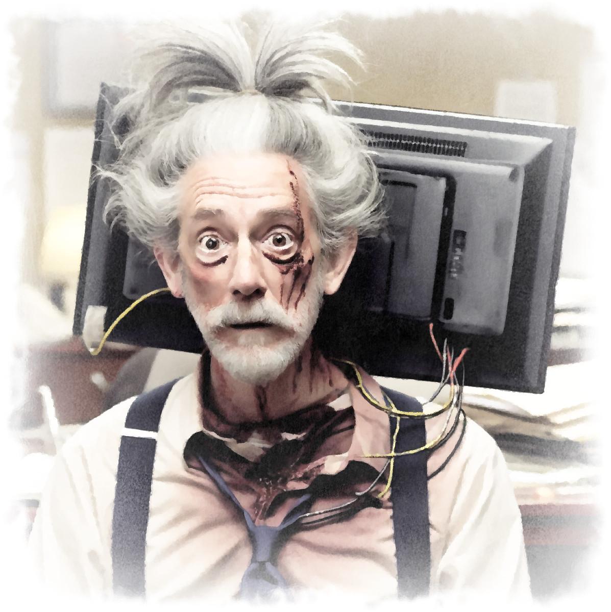 Meneer Willy houdt van confrontaties...Ik zie een volgend plaatje van een oude heer met een bijzondere kraag. Niet van gouden ponden, maar van de rand van het digitale computerscherm. š