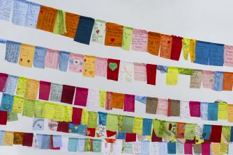 We gaan weer verder. Doen dingen op de manier waarop zij dat gedaan zou hebben. Nooit koffie of thee zonder koekje. Of cake. Of gebakje. Doen wij nu ook niet. En hoe raar dat ook klinkt, het voelt goed het zo te doen. Niet nu dan maar geen lekkers bij de thee. Dat is nou nét wat ze niet gewild zou hebben. We snoepen en hebben het gevoel dat ze bij ons is. Alsof zíj ons vertelt wat we moeten doen. Dat is ook wel weer leuk; dat ze zó diep ín ons zit, dat je gewoon voelt dat ze bij je is. Ze zal altijd bij ons zijn. Ze verblijft in ons hart en krijgt daar alle warmte die ze de laatste jaren zo moest missen. Chemo-kou. Of hoe noem je dat? Ze werd alleen nog warm onder mijn dikke dekentje. Over haar gewone kleding droeg ze altijd nog een wollen sjaal. Speciaal voor haar gebreid; een grote driehoek die perfect om haar schouders past. Of een fleece-deken. Die komt verder over haar rug en armen en dat vindt ze ook fijn.