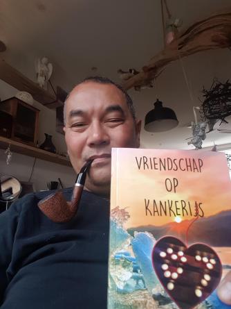 Dat laatste kan hij helemaal niet zeggen, want dat weet hij niet. Maar ja, voor één van de personages heeft hij 'model gestaan'. Een bescheiden stukje, maar toch. Terwijl ik het personage schreef en beschreef, kwam hij in mijn gedachten. Zag ik hem voor me. Zoals dat met enkele vrienden en familieleden meer zo is gegaan. Ik moest daar steeds bij lachen en zag hen voor me. Mijn fantasie is vrij grenzeloos, maar ergens ligt natuurlijk de voedingsbodem daarvoor. Hét wat er gebeurt verzin ik, maar ik zie er graag een gezicht bij. Vandaar.