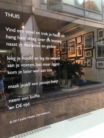 Wat geweldig ! Wat een warmte en wat een liefde. Vandaag was ik in Leeuwarden. Op de ruit van de DE koffiezaak staat een mooi gedicht .