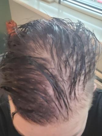 Eenmaal thuis voel ik me goed, moe, maar een stuk beter dan vorrige keer. Onze jongste is naar turnen, 3,5 uur lang, die is voorlopig niet thuis. Als mij man thuis komt van het werk, ben ik gedouched en klaar. Ik heb mijn haar uitgespoeld en er kwamen wederom enorme plukken vanaf . Afdrogen is niet te doen....wanneer ik dacht dat ik alle haren verwijderd had tijdens het douchen, zit alles weer onder tijdens het afdrogen. Overal vind ik donkere haren. Het irriteert me.