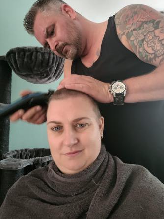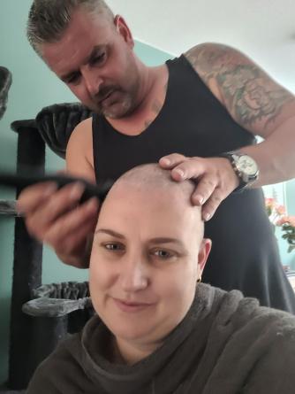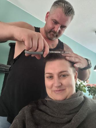 Ons voornemen was om dit met beide kinderen te doen, voor de verwerking, maar het liep anders: onze jongste was op turnen en we legde de oudste daarom als eerst uit dat het tijd was om mijn haar af te scheren. We hadden ze afgelopen dagen al meegenomen in het proces van haar verlies, maar het was toch even schrikken. We vroegen hem of hij erbij wilde zijn, maar dat was toch nog wat spannend. Hij is gaan douchen en ondertussen zijn wij met de tondeuse aan de gang gegaan. Uiteraard hebben we foto's genomen zodat onze jongste achteraf kon bepalen of hij het wilde zien.