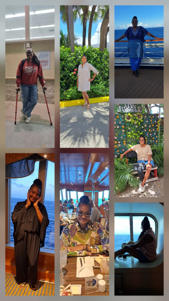 Ik had mijn krukken mee. De dokter zei toen, dat het een goed idee was, want mensen houden dan rekening met je. En dat klopte; deuren werden voor me opengehouden, ik mocht voor gaan en mensen leken extra vriendelijk te zijn.... De krukken waren ook nodig, want ik heb zowel op het schip als in Miami heel veel gelopen. Vaak ook zonder krukken. Aan het einde van de dag was mijn been dan heel dik en moe. Op een gegeven moment besloot ik met een iets dunnere kous aan te slapen, zodat het been in de ochtend wat "uitgeruster" was. Het zwemmen ging redelijk goed. Ik twijfelde eerst of ik dat moest doen. Eerder omdat ik bang was om geconfronteerd te worden met het feit dat ik het niet meer kon. Maar ik wist ook wel, dat ik die lekkere zee niet zou kunnen weerstaan. Dus had ik mijn zwemkleren voor de zekerheid toch in de koffer gedaan. Op het strand had ik een zwemband gehuurd en daarmee ging het prima. Schoolslag ging aardig goed, maar de meeste kracht kwam toch uit mijn armen dus dat hield ik niet lang vol. En dan was het goed dat ik die zwemband had. Op mijn rug zwemmen ging niet. Ik kan nog niet in die houding mijn been buigen. Ach ja, misschien lukt het later wel. In het zwembad wilde ik niet zwemmen; ik hou daar niet zo van en in verband met mijn net geheelde wonden durfde ik niet het chloorwater in. Tja, en verder had ik van mijn buik geen last. Aan het einde van de dag was hij wel een beetje hard en flink stijf (van het lopen en doen), maar in de ochtend stond ik goed op. Ik heb gedurende mijn reis bijna niet gedacht aan kanker en ziek zijn. Ik was in staat om oprecht te genieten en voelde me gelukkig. Ik heb op Facebook bijgehouden wat ik deed en het was heel leuk de positieve reacties van mensen te zien. Iedereen gunde mij die reis. Nou, ik gunde het mezelf ook, hoor! De dokter en ik waren het met elkaar eens dat het een heel goede beslissing was om me toch in mei te laten opereren. Mijn lichaam was in 6 weken tijd sterk genoeg om die reis te kunnen maken. Bijna ongelooflijk!