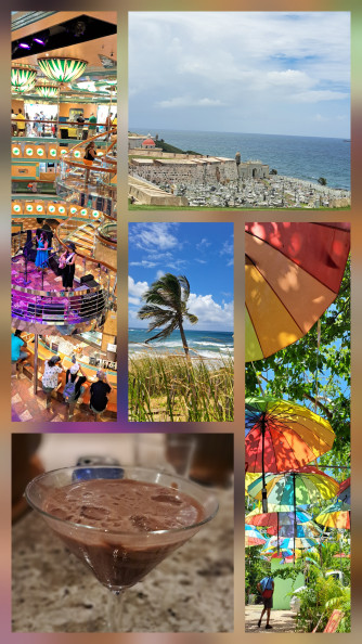 De vakantie was geweldig. Erg leuk met de familie en de vrienden van de familie. Zoonlief was ook mee met zijn eigen vrienden. Geweldig! Ik mistte mijn moedertje heel erg, want de laatste cruise was ze ook mee. Het was nu onmogelijk om haar mee te nemen vanwege haar dementie. Haar zus, mijn tante van 90 was ook mee! We waren met 22 mensen in totaal en het leeftijdsgemiddelde lag best hoog. De meesten waren 60+. Maar het waren krasse dames en heren hoor! In totaal waren we 6 dagen aan land en 7 dagen op het schip. Op het schip was er van alles te doen. Je hoefde je niet te vervelen. Alles wat je kan bedenken heeft zo'n cruiseschip. Eten, vooral heel veel eten, de hele dag door. Veel animatie, muziek, spelletjes, casino, zwembaden, winkels, sportruimte, barren, pffff ga zo maar door. De landen die we hebben bezocht waren Puerto Rico, De Dominicaanse Republiek en de Bahamas (Grand Turk). Ik vond het heel mooi om die plekken te bezoeken. Voor mij was dit de derde cruise. Grand Turk en De D.R. heb ik al eerder bezocht. Op het laatste eiland heb ik gezwommen in heerlijk kristalheldere water! Het was zo ontzettend genieten!