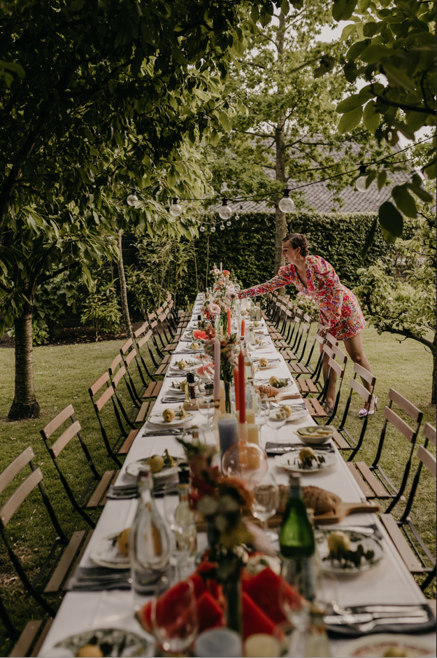Prachtige foto van die fantastisch gedekte tafel op die buitengewoon mooie locatie.