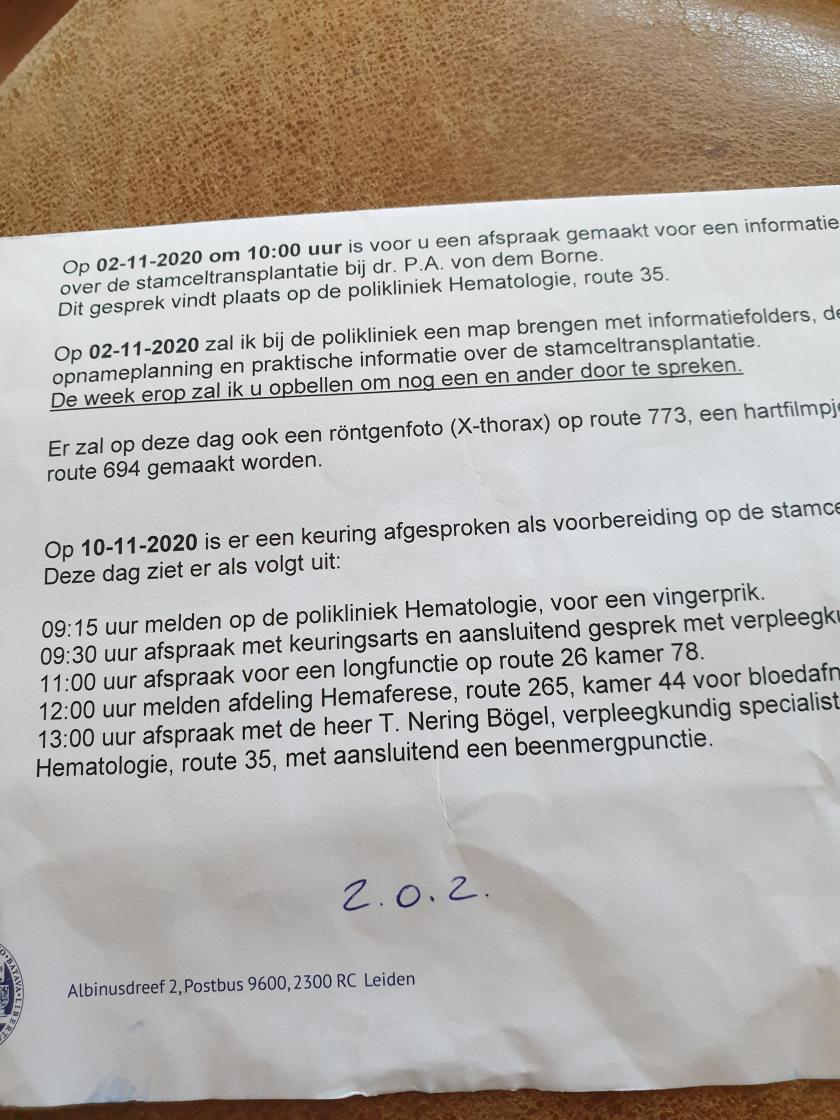 Vandaag eindelijk bericht uit het LUMC! Nog niet alle uitslagen zijn binnen, maar in principe gaat de stamceltransplantatie door!