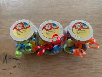 Bij mijn werk aangekomen zet ik traktaties neer bij de koffiecorners en loop naar mijn kantoor. Ballonnen, slingers en foto’s geven mijn afscheid een vrolijk tintje, op mijn bureau staan enveloppen en vazen met een paar losse bloemen erin waaraan kaartjes met lieve teksten hangen. In de loop van de dag worden de vazen steeds voller. Heel veel collega’s komen langs om een afscheidsknuffel te halen en een bloem af te geven.