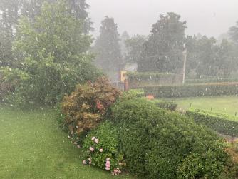 We hebben in de warmte geslenterd door de oude straatjes en bij de rivier gezeten. Weer terug bij de B&B kregen we te maken met noodweer. Vanochtend hadden we ook al stevig onweer gehad, maar nu was het nog een tandje erbij, met enorme bliksemflitsen, donderknallen en hagelstenen zo groot als pingpongballen. Met een lekkere salade zaten we op ons balkon op de eerste rang voor dit schouwspel. Maar ik vind het niet erg dat we morgen naar Crespina bij Pisa rijden. Daar valt de komende week als het goed is geen drup. Nu slapen, ik moet goed uitgerust zijn om Theo morgen veilig door het verkeer te loodsen. “Let op Theo…”.