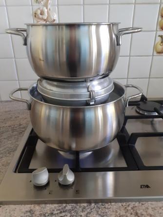 Ik had een kleine gemaakt en ik had daarom grof geschut nodig om de pan niet te laten drijven. 🙃 Hij smaakte heerlijk! Ik ben het nog niet verleerd.