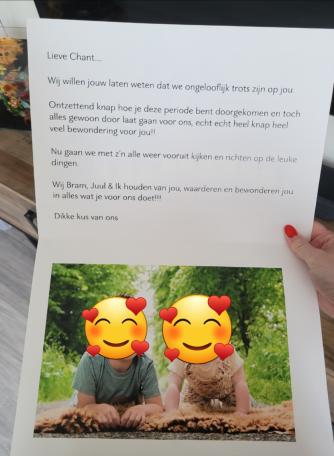 Ik voelde me zo ontzettend dankbaar dat ik hier goed doorheen ben gekomen en weer gezond verder mag gaan maar, dit alles had ik nooit gekunt zonder alle lieve mensen om me heen en dat wilde ik hun ook graag vertellen.