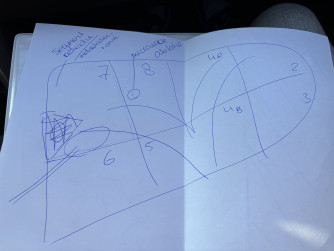 Vervolgens begon ze de lever te tekenen. Die bestaat uit segmenten. In segment 7 zit een uitzaaiing van 3 cm. Die zit ‘mooi’ aan de buitenkant en wordt dus helemaal weggesneden. De kleine uitzaaiing van 1 cm zit vlak bij een bloedvat en kunnen hem daarom niet wegsnijden. Deze branden ze weg. En dat allemaal dmv een ‘kijkoperatie’. Mijn buik gaat helemaal niet open. Ze gaan met een camera en tools door kleine sneetjes mijn buik in en regelen ze het ‘ff’.