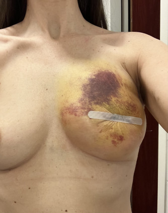 De dag na de operatie zat ik alweer administratief werk te doen, en na 5 dagen ook weer fysiek werk. Na 2 weken was ik weer fulltime aan de slag. Er was wel veel seroom (vochtophoping) ontstaan, daarom werd er 200 cc afgetapt. Hierna werd de tissue expander voor het eerst gevuld.