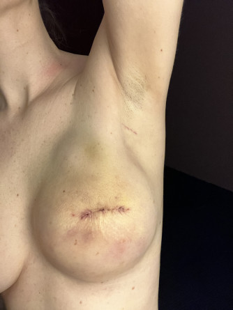 De wonden genezen verder heel netjes, mijn tissue expander is nu 1x bijgevuld, dat moet nog 2x en dan is het formaat gelijk aan mijn andere borst. Wel heb ik irritante neuropathische pijn in mijn bovenarm, en ontstaan er steeds wat contractuurtjes die ik dan weer moet wegmasseren en rekken. Maar ja de operatie is nog niet eens 3 weken geleden, dus dat zal allemaal wel weer goed komen!