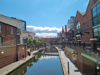 De heenreis, die gelukkig voorspoedig ging en de eerste 4 dagen in Birmingham waren goed. We hadden een fijne ruime hotelkamer net buiten de stad: het was er stil en rustig, we hadden onverwacht een minikoelkastje, de bedden sliepen heerlijk, de airco werkte en beneden konden we heerlijk rustig ontbijten. Birmingham zelf was wisselend: er waren een paar mooie plekken, met leuke pubs, water en veel paden die ook toegankelijk waren voor de scootmobiel. Verder was het toch vooral een grote grauwe stad. Maar dat was niet erg. Het maakte ook dat er niet veel hoefde en dat we regelmatig in het hotel waren om te rusten.