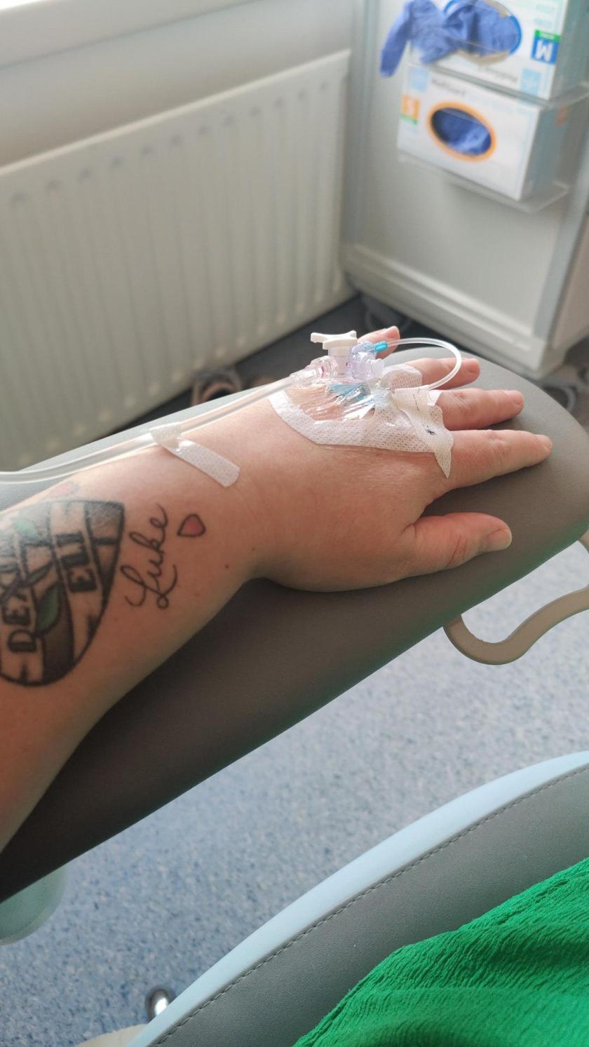 Extra medicatie via het infuus toegediend gekregen en even een uur niks......