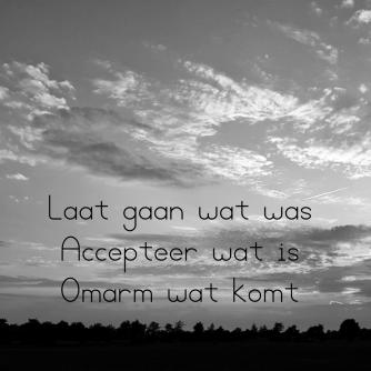 Het betere doemdenken dus. En al die gevoelens willen ruimte en aandacht, daar zit ik echt niet op te wachten, maar af en toe moet je toch. Nu ik mij weer wat beter voel, vliegen die gedachten mij minder aan. Dan durf ik erop te vertrouwen dat mijn inzet beloond wordt en dat er voor wat niet lukt goede oplossingen zijn. En mijn gedachtegang komt altijd weer terug bij de basis van alles: dat ik leef.