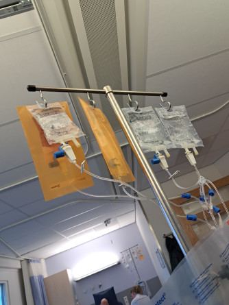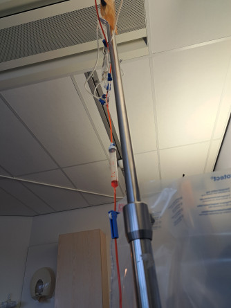 Heel raar zo zonder coldcap deze keer. Ineens viel me op dat al dat spul koud aanvoelt door de infuuslijn en ik voelde alles door mn lijf gaan... Van bubbels in de buik naar een gek gevoel in mijn wimpers tot kriebels overal.. Heel gek. En daarbij was de epirubicine rood van kleur... En ja, dat zie je ook terug op de wc 🫣.