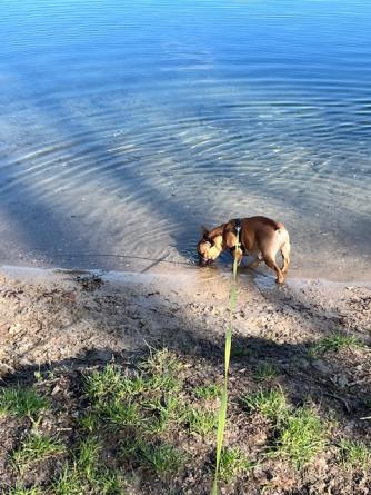 Mooi plekje is dat Femke waar je bent gaan wandelen? Waar is dat? Ik zie dat de hond er lekker kan poedelen in het water. Iets wat onze Finn ook heerlijk vindt.