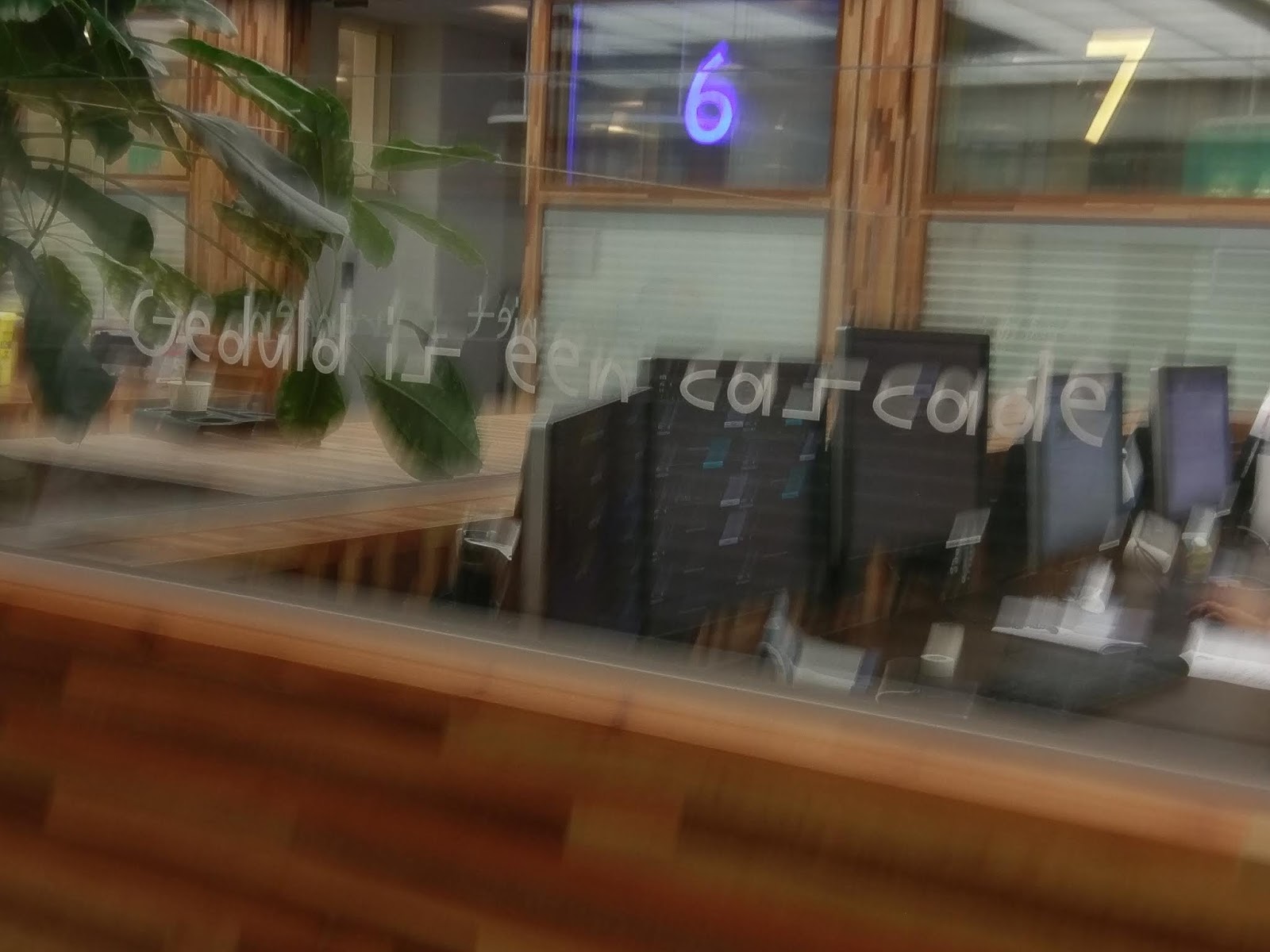 Op onderstaande foto zie je een deel van de echt prachtig verbouwde nieuwe spoedeisende hulp van mijn ziekenhuis. De zin op het raam zegt: Geduld is een cascade. Dit betekent geduld is een waterval. Denk daar maar es over na.