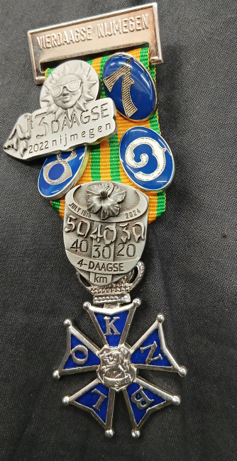 2 weken daarvoor onze eigen 2 daagse. Daar haalde ik de 1ste dag maar 22 km. Ik was helemaal kapot en overhit. De dag erna wel 32 km gelopen. Maar vond het zwaar.