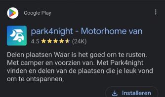 Nog een tip: We maken gebruik van de app Park4night. De gratis versie is prima, gebruiksvriendelijk, je kan via de kaart snel zoeken. Is zowel voor Nederland als buitenland. Bij iedere camperplaats of camping zie je meteen de recensies.