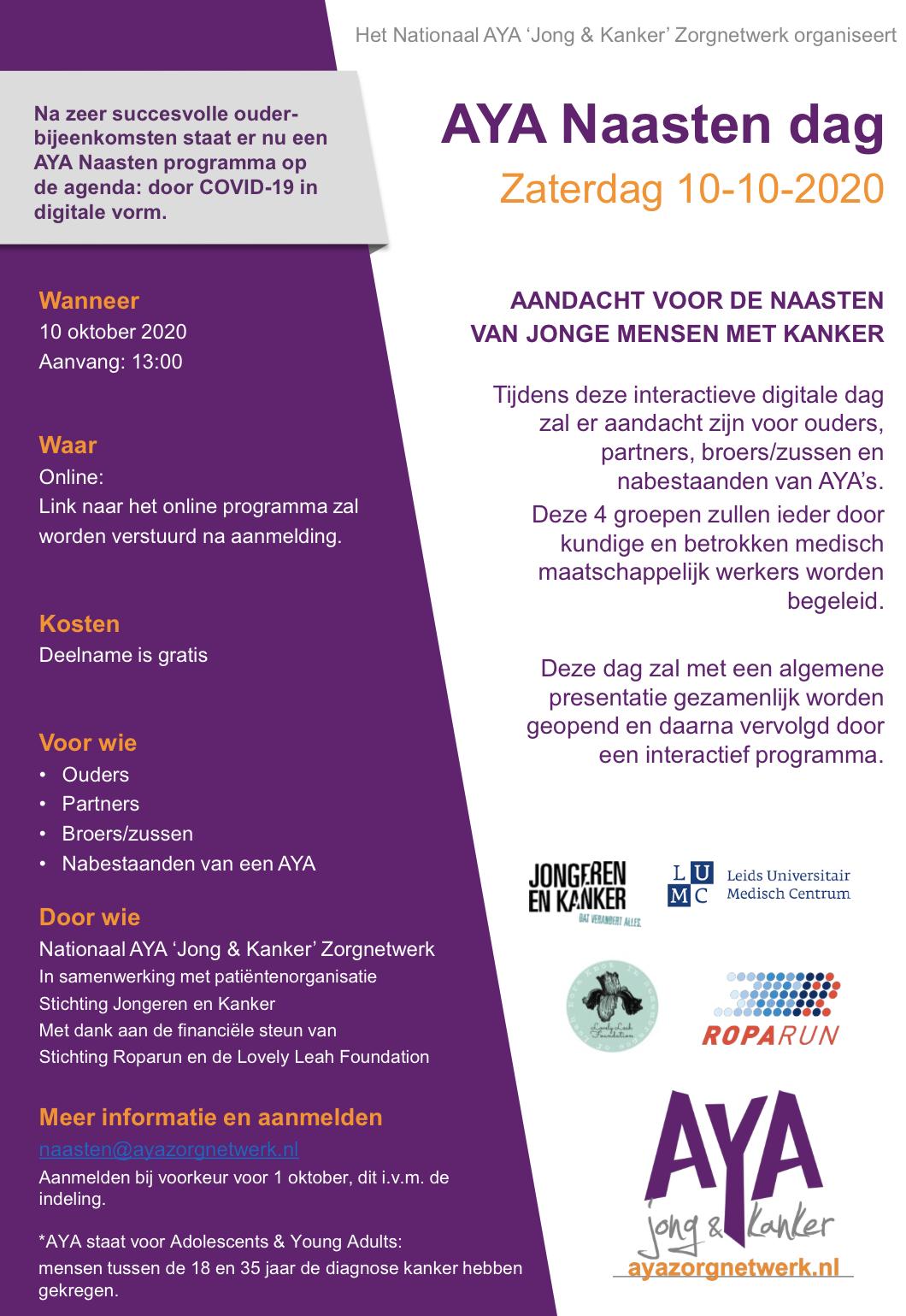 Interactieve digitale middag voor naasten van jongeren met kanker Volg dit gesprek Op 10 oktober wordt er een digitale meeting georganiseerd, de start is gezamelijk daarna zal er in groepen verder gegaan worden,zie flyer. Reageren 1 Inloggen om een reactie te plaatsen Toon opties Meld als ongewenst