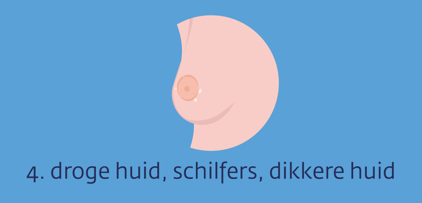 - De huid rondom je tepel is droog, schilferig. Of er zitten knobbeltjes rondom je tepel en je tepelhof.